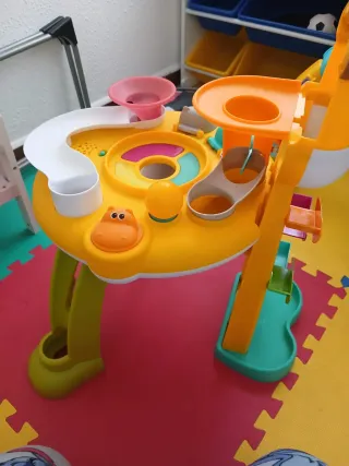 Divertido juguete musical para los más pequeños, ideal para estimular sus sentidos. - Incluye tambores, xilófono y baquetas. - Diseñado con colores vivos y alegres. - Superficie con letras y números.