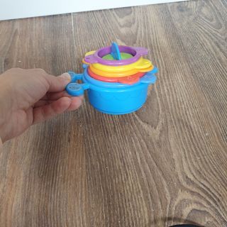 Juguetes apilados de plástico para la hora del baño. Muy entretenido. En perfecto estado