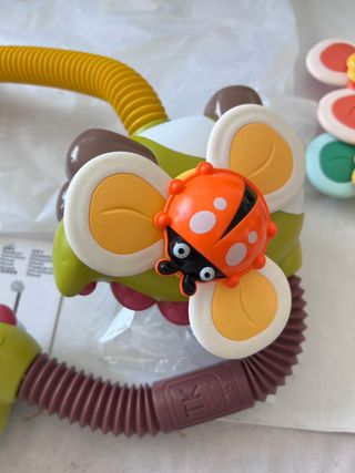 Asiento de seguridad para el baño del bebe. - Color rosa y gris. - Incluye juguetes interactivos. - Diseño ergonómico para mayor comodidad. - Cierre doble de seguridad.