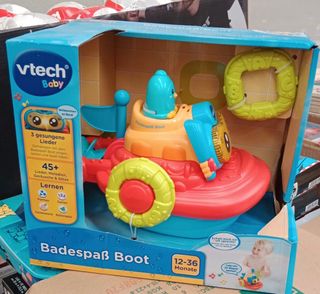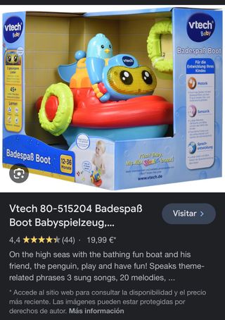 Baño divertido barco bebé juguete Canta, ríe y diviértete con la diversión del baño. El barco promueve las habilidades motoras finas y gruesas a través de su rueda de agua y su amigo, el pingüino. Vamos, experimenta una nueva aventura en el agua junto con el divertido barco para bañarse Habla frases temáticas 3 canciones cantadas, 20 melodías. Botón luminoso para presionar
