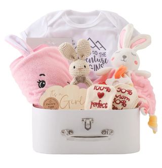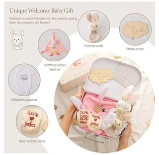 Regalo recién nacido Promise Babe Baby Gift Set Traje regalo para bebés,,toallas baño para fiestas bebés,calcetines mantas para bebés milestone,ganchillo madera,juguetes Griffin Rattle. Color rosa. Ref: J917 NUEVO a estrenar en caja.