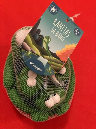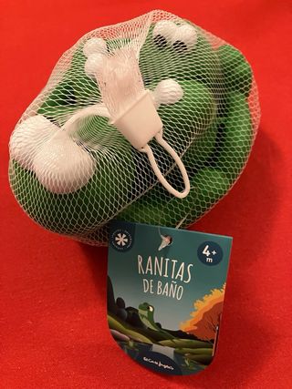 Juego de ranitas de goma para el baño, de la marca El Corte Inglés. Son ideales para que los más pequeños se diviertan en la bañera. NUEVO en su embalaje original. - Diseño de ranitas. - Color verde.