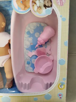 Set de juego de la marca Birimba para que los más pequeños disfruten del baño. - Incluye muñeca con albornoz. - Bañera rosa. - Accesorios de baño como jabonera y orinal. Nueva