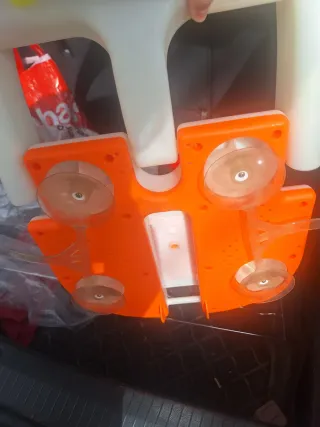 Asiento de baño Foppapedretti para bebés. Se ha utilizado una vez. Dimensiones del producto: 30P. x 38,5W x 24,5H centímetros Rango de edad: de 6 a 15 meses Recomendación de peso máximo: 13 kg Asiento de baño equipado con ventosas en la base. Equipado con marcos de ventanas, no con juguetes coloridos y una bomba rociadora de agua. El reposabrazos protector se abre como una puerta Color del producto: azul, naranja Material del producto: plástico