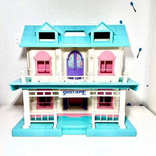 Casita de muñecas My Sweet Home original, años 90. Casa de dos plantas que se abre completamente en varios módulos, con espacios bien definidos (salón, dormitorio, baño, cocina, zona de estar). Diseño clásico noventero en tonos pastel (turquesa, rosa y blanco) con cartel original “my Sweet Home”. Se vende junto a un lote amplio de muebles vintage compatibles, ideal para jugar o para colección. (ver fotos de todos los muebles) Le falta un toldo morado en unas de las ventanas de atrás. Tiene el tamaño perfecto para sylvaian/playmobil casita de muñecas, my sweet home, casa de muñecas vintage, casa de muñecas años 90, casa plegable