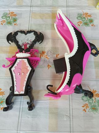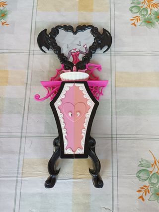 PREGUNTAR ANTES DE COMPRAR. Sala de Baño de Draculaura. Incluye tocador y bañera y una toalla. El tocador en la parte derecha tiene un color naranja y en la parte izquierda tiene un color rosa.