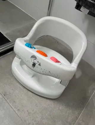 Sillita de baño diseñada para la seguridad y comodidad del bebé. - Está sin estrenar con su plástico y caja. - Diseño con divertidos juguetes marinos. - Material de plástico resistente y fácil de limpiar.
