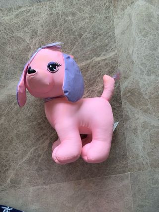 Set de juego de Barbie con un perrito para bañar. Incluye bañera, ducha y accesorios. - Perrito de peluche rosa y morado. -Bañera morada con detalles de flores. -Ducha con tubo verde. -Accesorios: peine morado, cepillo morado y botella rosa de Barbie.