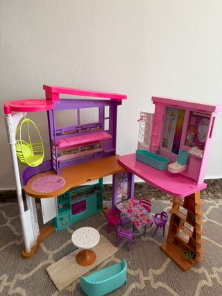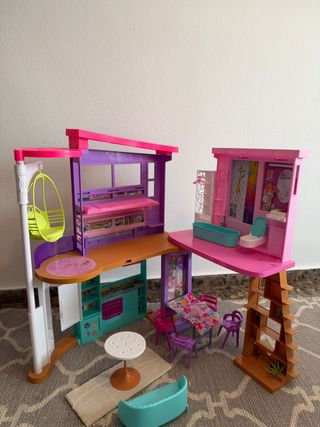 ¡Esta casa de Barbie está lista para nuevas aventuras! Mi hija creció y llegó el momento de pasar esta hermosa Casa de Barbie a otra niña(o) para que siga jugando e imaginando 🏠💫 🧸 Usada con mucho cariño, en excelente estado 🧩 Todas las piezas incluidas 🛁 Baño + 🍽️ cocina + 🪑 muebles 🌿 Terraza con silla colgante 📸 Según las fotos 💶 Precio: 50 € 📍 Recogida en Malilla
