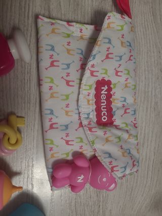 Set de juguetes para el baño, ideal para la hora del baño. - Bañera de juguete Nenuco - Pañal de juguete. - Bote con varios juguetes pequeños de colores.