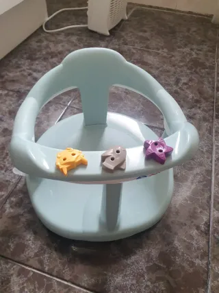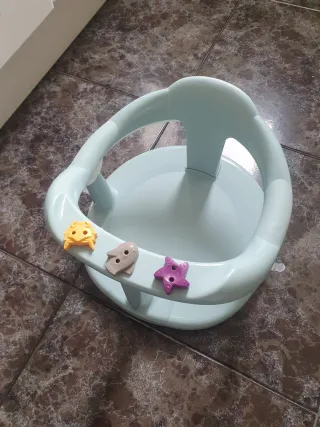 Asiento de bañera para bebés de la marca Interbaby, diseñado para hacer la hora del baño más divertida. - Color verde menta. - Incluye juguetes interactivos. Ergonómico y seguro. Con barra extraíble para una fácil colocación del bebé. Marca interbaby. Nuevo. No tengo la caja.