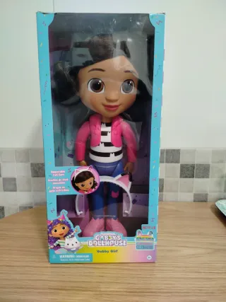 Muñeca de Gabby Girl de la serie Gabby's Dollhouse. En su caja original, sin abrir. - Incluye orejas de gato extraíbles. - Ropa de la muñeca: chaqueta rosa, camiseta a rayas y pantalones azules. - Muñeca de la serie de Netflix.