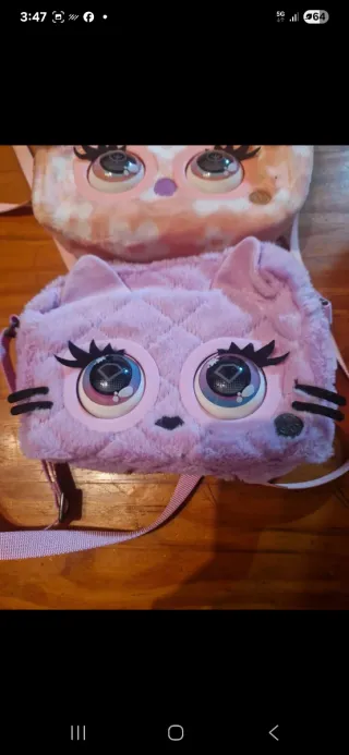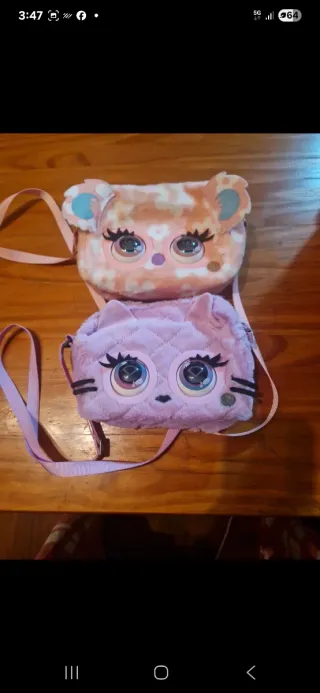 Dos adorables bolsos interactivos Purse Pets, uno con diseño de gato y otro de koala. Son suaves y divertidos. - Bolso interactivo de gato. - Bolso interactivo de koala.