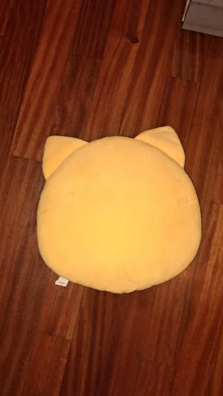 Peluche con forma de emoji de gato riendo a carcajadas. Tiene las orejas de gato y lágrimas de alegría. - Diseño de emoji. - Forma de gato. - Color amarillo.