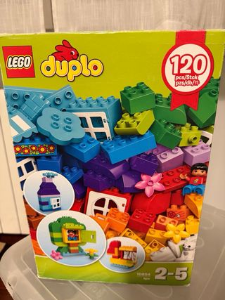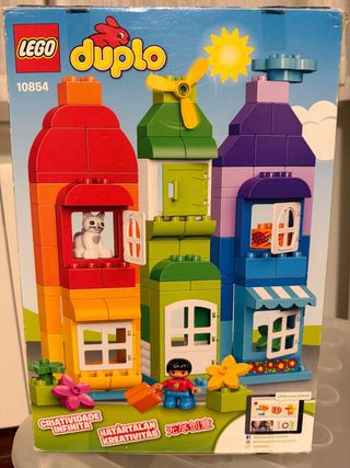 Set de construcción LEGO Duplo 10854, Casa Creativa. Fomenta la imaginación y el juego. - Incluye figuras y accesorios. - Piezas de colores vibrantes. - Ideal para manos pequeñas. - 120 piezas. Artículo descatalogado Las piezas están perfectas, creo que falta la maleta y no recuerdo si una flor, pero la caja está mordida por uno de mis gatos.