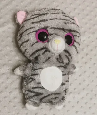 Adorable peluche de gato Kiki de la colección Ty Beanie Boos. Suave y perfecto para coleccionar. - Diseño de gato con rayas grises. - Ojos grandes y brillantes. - Mide 30 cm