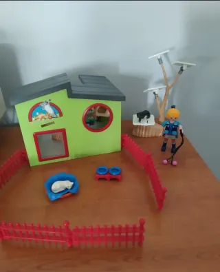 Set de juego de Playmobil con un árbol para gatos y varias figuras. - Incluye árbol para gatos con plataformas. - Figuras de personas. - Varias figuras de gatos de diferentes colores.