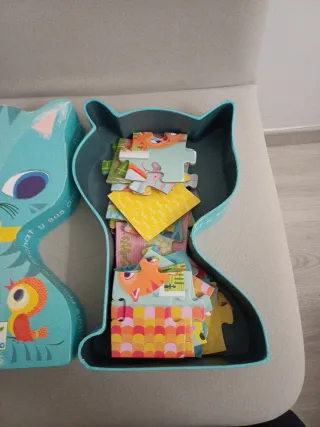 Puzzle con motivo de gatos de la marca marca Djeco. Cartón muy fuerte y brillante, 24 piezas muy grandes para niños de 3 o más años. Muy buen estado.