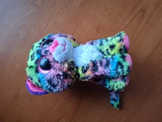 Este adorable peluche suave tiene forma de gato vestido de leopardo rosa. Squishimals