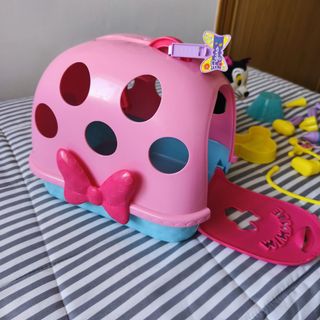 Set de juego de Minnie Mouse con transportín y accesorios. - Transportín rosa con puerta. - Figura de gato. - Accesorios de veterinario: estetoscopio, jeringuilla, peine y más.