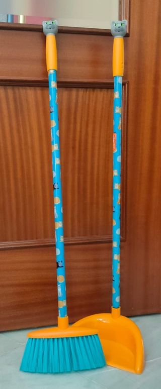Set Dulce Hogar de escoba y recogedor color azul y amarillo con gatos. Permite adquirir responsabilidades del hogar y reproducir roles adultos. La escoba mide aprox. 76 cm y el recogedor aprox. 75 cm. Edad recomendada 3-4 años. 🔴✅️WALLAPOP TODO PARA HOMBRE Y MUJER EN MI OTRO PERFIL CON MÁS DE 160 VALORACIONES. PREGÚNTAME SIN COMPROMISO✅️🔴
