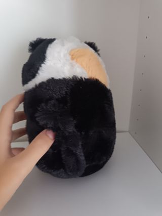Adorable peluche con forma de gato calicó. Su tacto es muy suave y agradable. - Diseño de gato con manchas. - Ojos brillantes y detalles bordados. - Orejas rosadas.