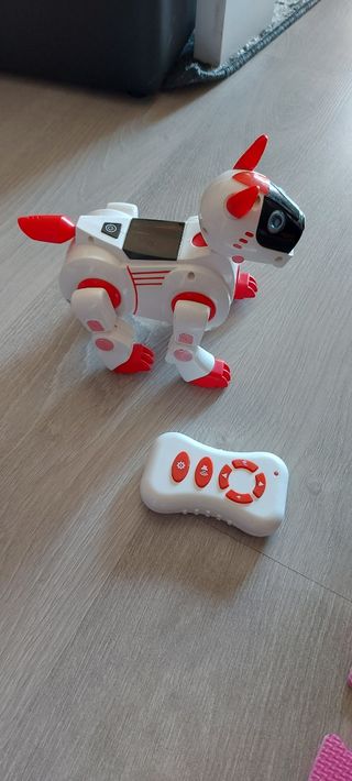 Perro robot que anda hacia alante y atrás, baila y ladra. Tiene poco uso, se podría decir que esta nuevo, pero no tiene la caja.