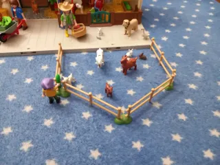 Set de juego de Playmobil de una granja con animales y figuras. - Incluye casa de granja con puertas y ventanas. - Diversos animales como vacas, cabras, gallinas y perros. - Figuras de personas con accesorios. - Valla para el corral. 4897. Lo que sale en la foto ENVIO POR INPOST