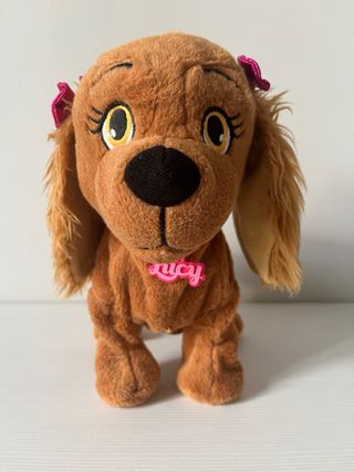 Poco uso no incluidas pilas. IMC Toys. Bonita perrita interactiva que obedece ordenes de su dueño. La perrita interactiva Lucy se comporta como un perro de verdad, además canta y baila. Obedece a 20 órdenes diferentes como siéntate, ladra, come, saluda y muchas más. Puede hacer el pino y baila 4 estilos diferentes de baile como el hip hop, ballet, salsa y rock & roll.