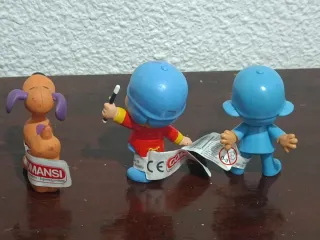 Lote de figuras de PVC del personaje Pocoyó y sus amigos. - Incluye a Pocoyó y a su perro. - Figuras de plástico. - Ideales para coleccionar o jugar.