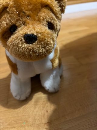 Peluche de perro con pelo muy suave al tacto. Su tamaño es mediano a grande, ideal para abrazar. - Textura de pelo muy suave. - Tamaño mediano-grande. (Como dos botellas de agua de 1.5litros) - Pelo en perfecto estado. - Limpio