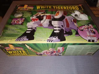 Figura White Tigrezord de los Power Rangers, fabricada por Bandai. Incluye la moneda del Tigre Blanco, espada saba, Ranger, pilotos rojos del tigre Funciona perfectamente . Lamentablemente se rompio el brazo Incluye Power Rangers blanco en muy buen estado no tiene la armadura el tigre está en perfecto estado de conservación y el dorado en perfecto estado el único problema es que se me cayó y se me dañó un brazo como se ve en fotos se puede reparar se vende tal cual está caja en buen estado como se ve en fotos después de más de 30 años - La boca se ilumina y emite sonido de rugido de tigre. - Se transforma en el Guerrero Thunder.