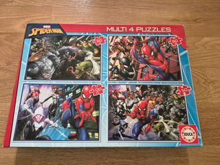En buen estado, sólo tiene un poco dañada la caja (ver fotos). Puzzle de Educa, de Spiderman. 4 puzzles de 50, 80, 100 y 150 piezas. Ideal para niños de 6 - 8 años.