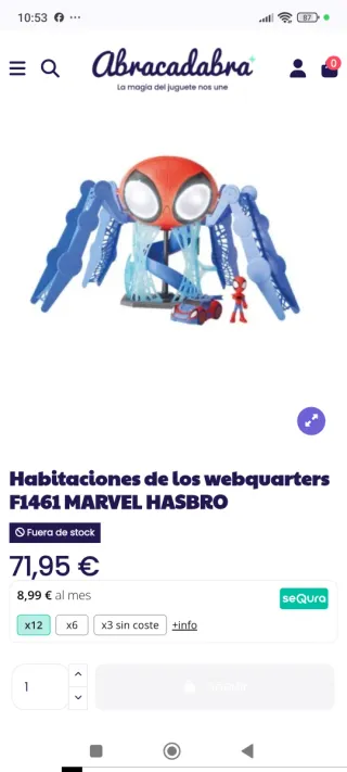 Figura de acción de Spiderman de Marvel. Nunca usado, solo sacado de la caja. Se lo acaban de regalar y tiene otro igual.