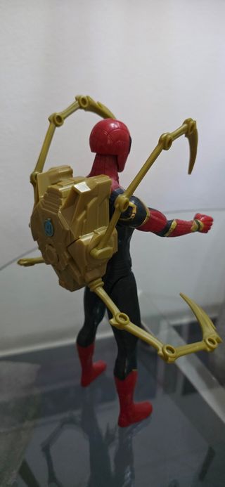 Figura de acción de Spider-Man, mide aproximadamente 30 centímetros. Inspirada en el personaje de Iron Spider de las películas de Marvel.