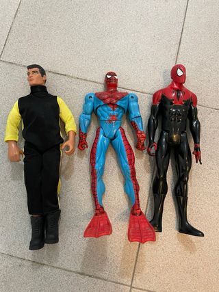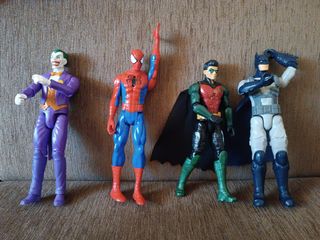 Se venden cuatro figuras de acción en buen estado. Son de tamaño considerable y están listas para jugar. - Incluye: Joker, Spiderman, Robin y Batman. - Figuras de plástico resistente. - Ideales para coleccionistas o para jugar.