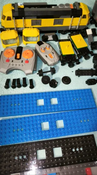Lote de lego casi 2 Trenes 7939(tiene 2 motores y dos mandos a distancia.El fino no tiene tapa trasera pero toda la electrónica funciona muy bien).Vagón de pasajeros 60051 con la cabina.Vagón para los barriles y 2 bases azules del tren 60052. Muchas vías de tren 12v antiguas+ Helicòptero de Spiderman 4858+ Piezas de lego ⬇️ Nexo knights 66547,70317+ Helicòpteros city 60101,60123,60064/60034+ Ruedas y muchas piezas para crear tus propios vagones o para completar los tuyos 😀. En resumen:vendo todo lo que se ven en las imágenes Más información por privado Recoger en Mallorca o por envío