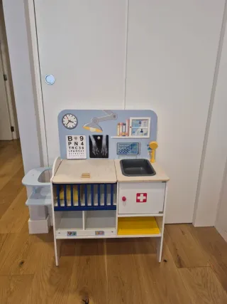 Divertida clínica veterinaria de juguete de Lidl. Ideal para que los más pequeños exploren el mundo de la veterinaria. - Incluye accesorios como estetoscopio, termómetro y más. - Diseño de madera con detalles coloridos. - Estructura con compartimentos para guardar juguetes.