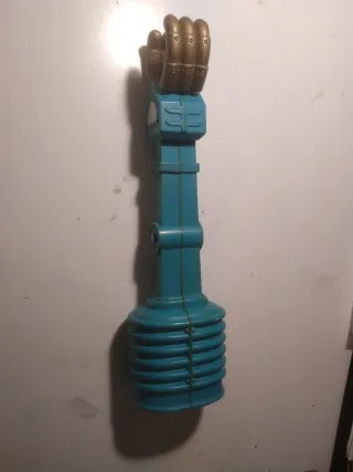 Juguete Sideralbrek de color azul y dorado. Años 70, el sistema de agarre no funciona.