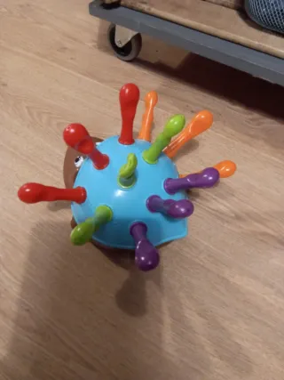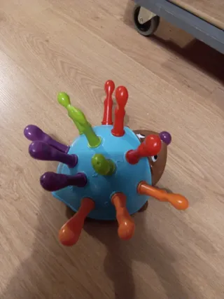 Divertido erizo de juguete con clavijas de colores para encajar. Fomenta la motricidad fina y el reconocimiento de colores. - Clavijas de varios colores: morado, verde, naranja y rojo. - Diseño de erizo. - Material de plástico.