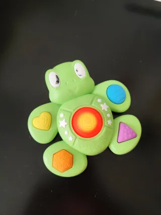 Juguete interactivo con formas y colores para bebés. Con luces y sonidos, se entrega sin pilas Pop it - Diseño de tortuga. - Botón central rojo. - Formas de corazón, círculo, hexágono, triángulo y círculo con rayas. - Colores: verde, amarillo, azul, naranja, morado y rojo.