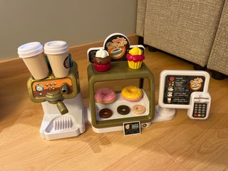 Cocina de juguete de madera de Ikea. Se incluyen menaje, frutas y verduras, caja registradora y cesta de la compra
