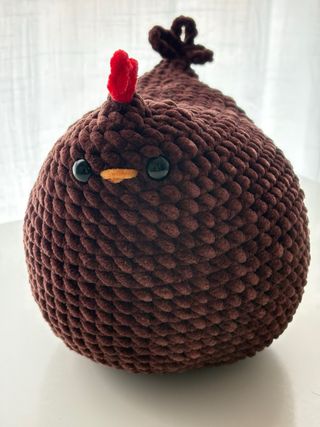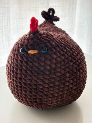 Adorable gallina de peluche tejida a mano, perfecta como compañera. - Color marrón oscuro. - Ojos negros y pico naranja. - Detalle de cresta roja. Más colores, tamaños y otros diseños en mi perfil! También por encargo