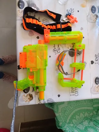 Lote de juguetes Nerf para horas de diversión. - Pistola Nerf con cargador. - Correa para munición. - Gafas de protección. - Accesorios adicionales.