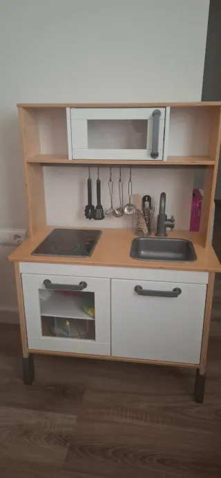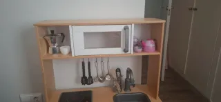 Preciosa cocinita de juguete, ideal para los más pequeños de la casa. Un set de cocina completo para horas de diversión. - Incluye horno, vitrocerámica y fregadero. - Cajones y armarios para guardar accesorios. Incluye comida de plástico, olla, sartén y muchas más cosas Ha sido usado porvtres niños. Hay quereparar los cajones