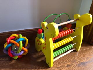 Jirafa de madera multifuncional, juegas y aprendes a la vez. Pelota multicolor