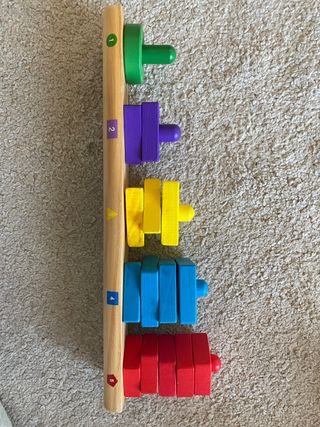 Casita en forma de seta con letras encajables . Tiene distintas melodias al pulsar la flor. Reloj con manecillas q se mueven. Cuando encajas una letra los ojos del caracol se encienden y la seta emite sonidos. La puerta se abre y cierra.