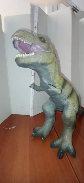 Figura de dinosaurio Triceratops, ideal para coleccionistas o para jugar. - Diseño detallado. - Pintura verde con manchas rojas y amarillas. Son articulados y hacen ruido cuando se mueven