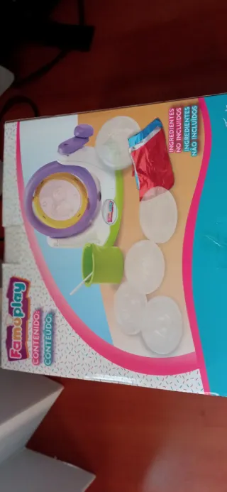 Set de juguetes FamoPlay para crear figuras. - Incluye máquina dispensadora. - Incluye moldes. - Incluye recipiente. - Ingredientes no incluidos.