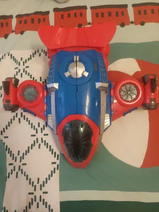 A la venta, una nave espacial de Spiderman. Es un juguete en buen estado, ideal para los amantes de arácnido. - Incluye una nave espacial con detalles en rojo y azul. - Diseño inspirado en el personaje de Spiderman. - Perfecta para juegos de rol y aventuras. - Sólo falta la figura.